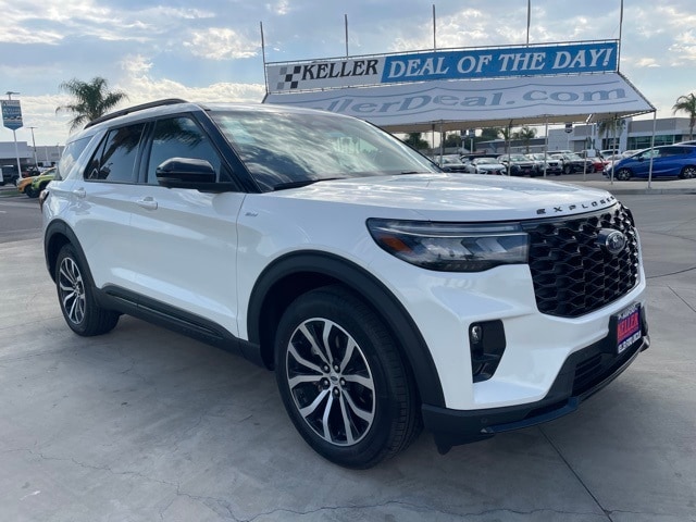 Keller Ford is please to offer this 2025 Ford Explorer ST-Line Star White Metallic Tri-Coat. 2.3L EcoBoost I-4 Factory MSRP: $47,910 $4,301 off MSRP! 10 Speakers, 3.58 Non-Limited Slip Rear Axle, 3rd row seats: bench, 4-Wheel Disc Brakes, ABS brakes, Air Conditioning, Alloy wheels, Apple CarPlay/Android Auto, Auto High-beam Headlights, Automatic temperature control, Brake assist, Bumpers: body-color, Compass, Delay-off headlights, Driver door bin, Driver vanity mirror, Dual front impact airbags, Dual front side impact airbags, Electronic Stability Control, Emergency communication system: 911 Assist, Exterior Parking Camera Rear, Four wheel independent suspension, Front anti-roll bar, Front Bucket Seats, Front Center Armrest, Front dual zone A/C, Front fog lights, Front License Plate Bracket, Front reading lights, Fully automatic headlights, Garage door transmitter, Heated door mirrors, Heated front seats, Heated steering wheel, Heated Unique Cloth Captain's Chairs, Illuminated entry, Knee airbag, Leather steering wheel, Low tire pressure warning, Navigation System, Occupant sensing airbag, Outside temperature display, Overhead airbag, Overhead console, Panic alarm, Passenger door bin, Passenger vanity mirror, Power door mirrors, Power driver seat, Power Liftgate, Power passenger seat, Power steering, Power windows, Radio: B&O Sound System by Bang & Olufsen, Rear air conditioning, Rear anti-roll bar, Rear reading lights, Rear window defroster, Rear window wiper, Remote keyless entry, Security system, Speed control, Speed-sensing steering, Speed-Sensitive Wipers, Split folding rear seat, Spoiler, Steering wheel mounted audio controls, Tachometer, Telescoping steering wheel, Tilt steering wheel, Traction control, Trip computer, Variably intermittent wipers, Wheels: 20" Ebony-Painted Machined Aluminum. 20/29 City/Highway MPG