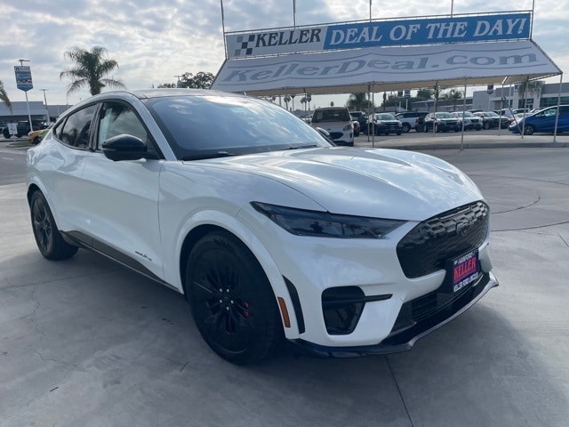 Keller Ford is please to offer this 2025 Ford Mustang Mach-E GT Star White Metallic Tri-Coat. Electric Motor Factory MSRP: $60,410 $8,319 off MSRP! 10 Speakers, 1st & 2nd Row Floor Liners w/o Carpet Mats, 4-Wheel Disc Brakes, ABS brakes, Adaptive suspension, Air Conditioning, Alloy wheels, AM/FM radio: SiriusXM with 360L, Apple CarPlay/Android Auto, Auto High-beam Headlights, Auto-dimming Rear-View mirror, Automatic temperature control, Brake assist, Bumpers: body-color, Cargo Area Cover, Cargo Floor Liner, Compass, Delay-off headlights, Driver door bin, Driver vanity mirror, Dual front impact airbags, Dual front side impact airbags, Electronic Stability Control, Emergency communication system: 911 Assist, Exterior Parking Camera Rear, Four wheel independent suspension, Front anti-roll bar, Front Bucket Seats, Front Center Armrest, Front dual zone A/C, Front License Plate Bracket, Front reading lights, Fully automatic headlights, Garage door transmitter, Heated door mirrors, Heated front seats, Heated Perforated ActiveX Performance Seats, Heated steering wheel, Hood & Decklid Stripe/Door Graphics Delete, Illuminated entry, Interior Protection Package, Knee airbag, Low tire pressure warning, Memory seat, Mobile Power Cord (120V/240V), NACS Fast Charging Adapter, Navigation system: Connected Navigation, Occupant sensing airbag, Outside temperature display, Overhead airbag, Overhead console, Panic alarm, Panoramic Fixed-Glass Roof, Passenger door bin, Passenger vanity mirror, Power door mirrors, Power driver seat, Power Liftgate, Power passenger seat, Power steering, Power windows, Radio data system, Radio: B&O Sound System by Bang & Olufsen, Rain sensing wipers, Rear anti-roll bar, Rear seat center armrest, Rear side impact airbag, Rear window defroster, Rear window wiper, Remote keyless entry, Security system, SiriusXM w/360L, Speed control, Speed-sensing steering, Speed-Sensitive Wipers, Split folding rear seat, Spoiler, Steering wheel mounted audio controls, SYNC 4A w/Enhanced Voice Recognition, Telescoping steering wheel, Tilt steering wheel, Traction control, Trip computer, Turn signal indicator mirrors, Variably intermittent wipers, Wheels: 20" Monochromatic High Gloss Black-Painted. 95/85 City/Highway MPG