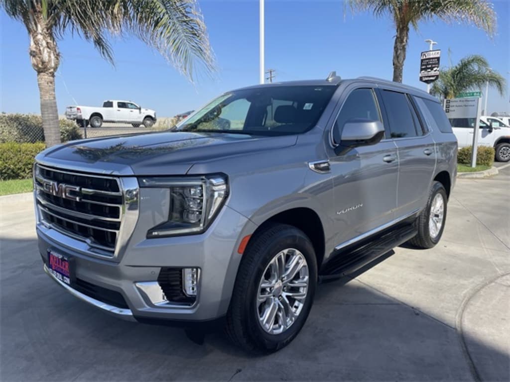 2 Presets For Power Driver Seat, 3.23 Rear Axle Ratio, 3rd row seats: split-bench, Apple CarPlay/Android Auto, Auto-dimming Rear-View mirror, Bose 9-Speaker Stereo Audio System Feature, Bright Chrome Bodyside Moldings, Bright Front & Rear Door Sill Plates, Chrome Door Handles w/Body-Color Strip, Fully automatic headlights, Hands-Free Power Programmable Rear Liftgate, Heated & Ventilated Driver & Front Passenger Seats, Heated door mirrors, Heated Driver & Front Passenger Seats, Inside Rear-View Auto-Dimming Mirror, IntelliBeam Automatic High Beam On/Off, Lane Change Alert w/Side Blind Zone Alert, Lane Keep Assist w/Lane Departure Warning, License Plate Front Mounting Package, Navigation System, Perforated Leather-Appointed Seating, Power door mirrors, Power Liftgate, Preferred Equipment Group 4SA, Rain sensing wipers, Rear Cross Traffic Alert, Roof rack: rails only, Safety Alert Seat, Universal Home Remote, Ventilated front seats, Wheels: 20" x 9" 6-Spoke Polished Aluminum, Wireless Charging. Sterling Metallic EcoTec3 5.3L V8 2023 GMC Yukon 4D Sport Utility 4WD SLT