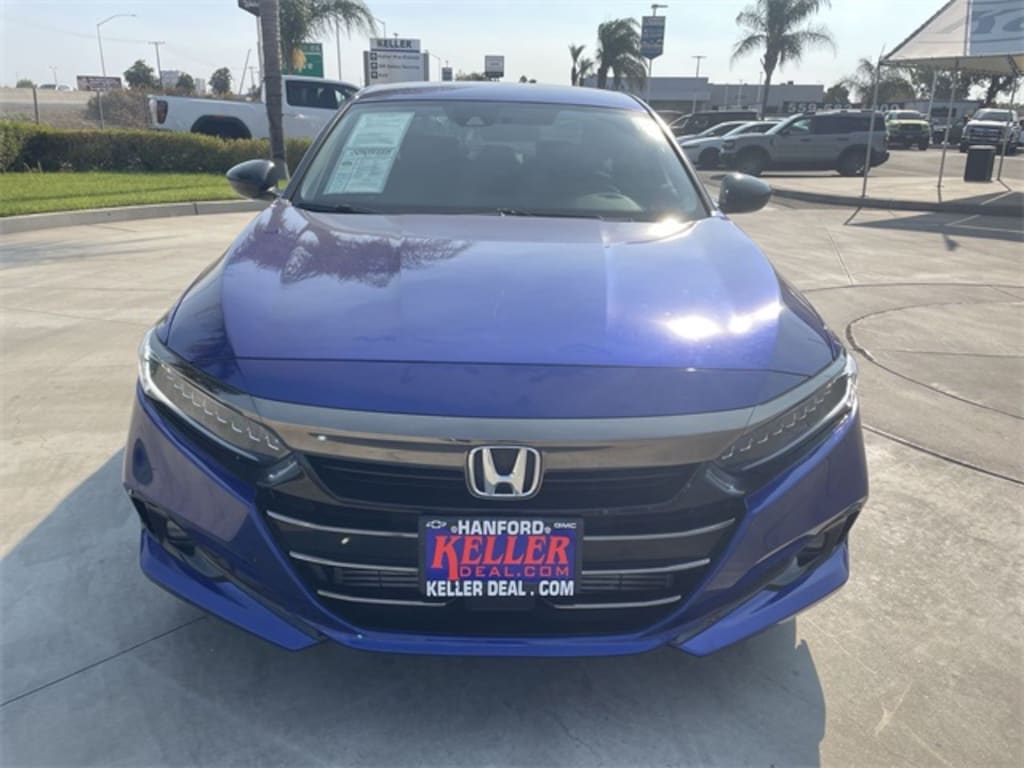 Adaptive Cruise Control: Adaptive Cruise Control (ACC) with Low-Speed Follow, Apple CarPlay/Android Auto, Bumpers: body-color, Exterior Parking Camera Rear, Forward collision: Collision Mitigation Braking System (CMBS) + FCW mitigation, Heated door mirrors, Heated Front Bucket Seats, Heated front seats, Lane Departure Warning System, Passenger door bin, Power door mirrors, Spoiler, Wheels: 19" Machine-Finished Alloy w/Black Inserts. Odometer is 1719 miles below market average! 29/35 City/Highway MPG Blue 1.5T I4 DOHC 16V Turbocharged VTEC 2022 Honda Accord 4D Sedan FWD Sport Special Edition